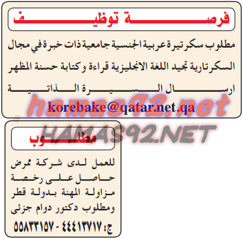 اعلانات وظائف جريدة الدليل الشامل القطرية اليوم الثلاثاء 7 ابريل 2015 .